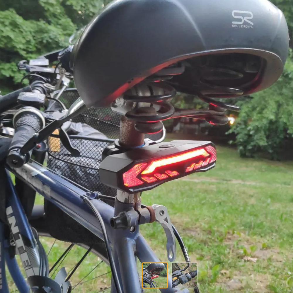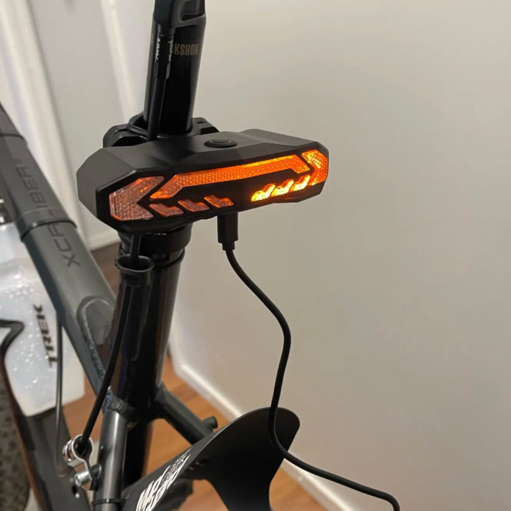Vores lygte inkluderer en trådløs fjernbetjening til blinklys. Dette gør det nemt at signalere, når du drejer, hvilket øger din sikkerhed på vejene.